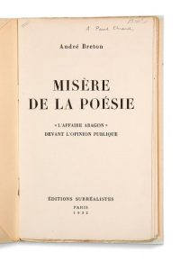Exemplaire HC appartenant à Paul Éluard avec dédicace de Breton.