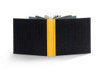 In-8 carré. Plein carton noir ondulé, dos en buffle jaune ondulé, étui de même titré, couverture à rabats (V. Sala-Vida, 2000).