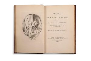 In-8, 3 ff. bl., couv. verte, 2 ff. bl., 145 pp. 2 ff. bl., couv., 3 ff. bl.. Demimaroquin grenat à bandes, dos à nerfs fileté, pièces de titre noires, filets dorés en lisière de cuir sur les plats, tête dorée sur témoins, gardes de papier gris, couvertures (avec pièce de titre imprimée sur la première) et dos (doublé).