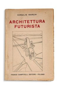 Édition originale en livre de poche avec couverture imprimée titrée en rouge de ce traité d'architecture écrit et illustré par l'un de plus célèbres architectes du mouvement futuriste italien.