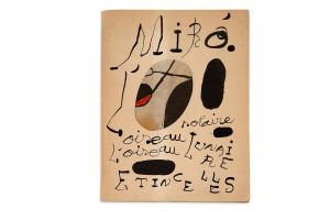 Édition limitée à 1275 exemplaires, celui-ci imprimé sur vélin d'Arches (n° 84/1200), de ce catalogue d'exposition à l'occasion de l'exposition des oeuvres de Miró à la galerie Pierre Matisse de