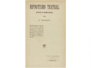 1900 ca. (MAGIA). WOLFF: HIPNOTISMO TEATRAL (SUS FARSAS). Barcelona: Gassò Hermanos, sa. 8°.173 p., 1 h. Ilustraciones en el texto y laminas. Enc. en tela editorial rotulada. Tela levemente deslucida.