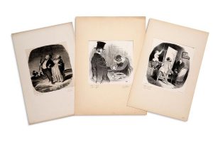 Lithographies sur vélin blanc, l'une en tirage du Charivari, certaines avec coloris, un peu jaunies.