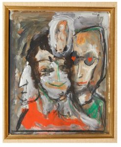 Belle gouache originale représentant des personnages dont un féminin, signé au recto par Milsthein.