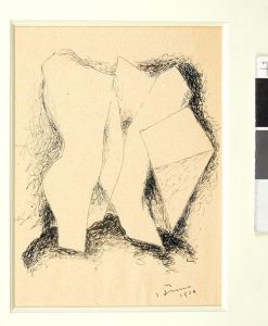 Sima, daté et signé au recto, figurant des formes géométriques et un corps de femme, tout à fait représentatif de l'univers artistique de Sima à cette époque.