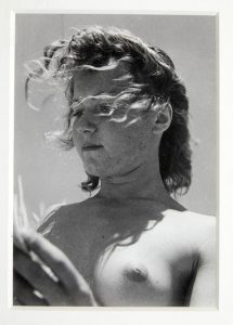 Tirage argentique d'époque daté, titré et signé au verso par Pierre Boucher, portant également son tampon, et représentant Lydia, seins nus.