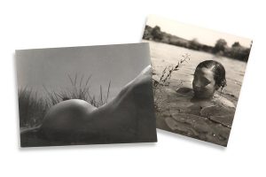 L'on joint: «Nu féminin dans les roseaux». 1941. 17,5 x 23,5 cm. Tirage argentique d'époque représentant un nu féminin de dos, tampon du photographe au verso.