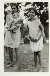 Tirage argentique d'époque représentant deux fillettes portant des bébés à Morea. La photographie est signée au verso par Roger Parry.