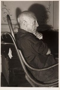 Tirage argentique d'époque signé au recto et annoté au verso par André Villers: «Picasso 1955 Canne, Villa La Californie. Photo et tirage réalisé par moi-même. André Villers».