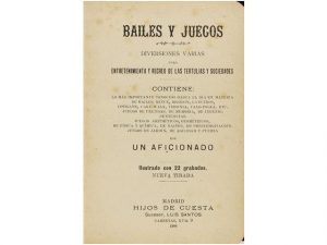 1906. (MAGIA). BAILES Y JUEGOS. Diversiones varias para entretenimiento y recreo de las tertulias y sociedades por un Aficionado. Madrid: Hijos de Cuesta. 1906. 8° menor. 255 p. Ilustraciones en el texto. Enc. tela editorial.