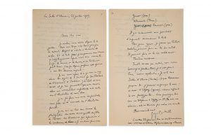 BATAILLE Georges (1897-1962) Lettre autographe signée adressée à Jean-Marie LO DUCA Les Sables-d'Olonne, 24 juillet 1954. 4 pages in-8 à l'encre brune sur papier. Importante lettre autographe adressée à Jean- Marie Lo Duca, un des fondateurs...