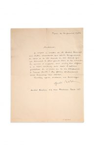 matin de M. André Bourdel, une lettre émouvante qui parle longuement de vous et de vos chants, en des termes qui me donnent le plus grand plaisir de les entendre [...]». Signed autograph letter addressed to a singer Paris, January 16, 1954, 1 page in-8 in brown ink on paper (traces of folding). Autograph letter signed addressed to an anonymous singer. "This morning I received from Mr. André Bourdel, a moving letter that speaks at length about you and your songs, in terms that give me the greatest pleasure to hear them...".