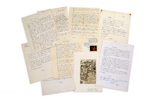 cartes postales (détournées dans la grande tradition situationniste) adressées à celle qui fut durant plus de 25 ans l'amoureuse de Guy Debord: l'artiste Michèle Mochot-Bréhat. «Nous n'imaginons pas du tout quel temps peut prendre la remontée des canaux, et surtout pour des navigateurs aussi intrépides que les Hamilton et toi, aussi vaillants dans la bordée que dans la haute mer l'eau d'un canal supporte plus mal encore que l'eau d'un port les animaux imprudents qui ont mis leurs bottes et qui rentrent à côté de la passerelle. D'autre part, il faut prendre garde aux embranchements des canaux. Un instant d'inattention et l'on se retrouve, au lieu de Paris à Hambourg ou à Livourne. Sur les périls de ce voyage, j'ai tout dit. Je t'attends [...]». Set of signed autograph letters and cards addressed to Michèle MOCHOT-BRÉHAT Various dates and formats. 10 letters and 11 cards from the founder of the Situationist International, Guy Debord, as well as magnificent postcards (misappropriated in the great Situationist tradition) addressed to the artist Michèle Mochot-Bréhat, who was Guy Debord's lover for more than 25 years. "We cannot imagine what the weather can be like going up the canals, and especially for sailors as intrepid as the Hamilton and you, as brave on the banks as on the high seas, the water of a canal bears even worse than the water of a port the imprudent animals who have put on their boots and come back to the side of the gangway. On the other hand, care must be taken with canal branches. A moment of inattention and you find yourself, instead of Paris, in Hamburg or Livorno. On the perils of this journey, I have said everything. I am waiting for you [...]".