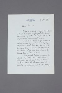de Giens. Lettre d'empathie signée «Alexis Léger [véritable nom de Saint-John Perse]» adressée à Dominique Aury à la mort de son compagnon Jean PAULHAN. «[...] C'est en vous désormais que s'éclaire la présence de celui qui vous fut, un si long temps compagnon d'esprit et de coeur que vous avez un si long temps assisté dans les épreuves de sa vie d'homme, et que vous aurez, jusqu'à la dernière heure aidé à se survivre...» «Tenez donc pour votre premier devoir la reprise et la défense de vos forces physiques, et faites confiance, chère amie, à la fidélité des amitiés personnelles qui continuent de vous entourer». Dominique Aury est l'auteure du célèbre roman paru sous pseudonyme Histoire d'O et qui fut d'abord attribué à Paulhan qui préfaça l'ouvrage. Signed autograph letter addressed to Dominique AURY Presqu'île de Giens, October 20, 1968, 2 pp. in-4 in brown ink on letterhead from Saint-John Perse bearing his address in the Giens peninsula. Letter of empathy signed "Alexis Léger [real name of Saint-John Perse]" addressed to Dominique Aury at the death of his companion Jean PAULHAN. "[...] It is in you henceforth that the presence of the one who was to you, so long a companion in spirit and in heart that you assisted him in the trials of his life as a man, and that you will have, until the last hour, helped him to survive..." "Therefore, take as your first duty the recovery and defence of your physical strength, and trust, dear friend, in the loyalty of the personal friendships which continue to surround you". Dominique Aury is the author of the famous novel published under the pseudonym Histoire d'O and which was first attributed to Paulhan who prefaced the work.