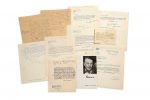 L'écrivain et le journaliste ont corrigé, raturé, amélioré au crayon et au stylo bille ces retranscriptions tapuscrites des émissions diffusées en 1955; - 6 LETTRES: 2 L.A.S. (1 p. à l'encre, mai 1955), 4 L.T.S. (nov. 1955, 3 pp.) et 1 carte de correspondance autographe signée Au sujet des Entretiens. «Je ne sais pas comment vous avez l'habitude de travailler. Pour ma part, je préfère improviser, sans connaître d'avance les questions qui me sont posées. Mais celui qui questionne doit évidemment savoir où il va. Connaissez-vous bien mon oeuvre ? Avez-vous un plan des émissions...». Répète que les enregistrements doivent être préparés, sans quoi il perdra un grand nombre d'heures. Concernant la rémunération pour leur publication après leur transmission: «je vous signale que le prix pour un roman dans une publication importante est de 1200000 francs. Cela vous donne une idée comparative de ce que nous pouvons accepter...». Sont joints: Copie de la lettre de Parinaud sollicitant Simenon (1re p. seule); 2 L.T.S. de Mme Simenon fixant rendez-vous à Mougins pour l'enregistrement; 1 L.A.S. concernant la publication des Entretiens; J. Decrest: 1 p.a.s., petit article sur Simenon, avec envoi à Parinaud; A. PARINAUD: Présentation de Simenon, 10 pp. tap. et 5 pp. manuscrites. Parinaud y explique le déroulement des entretiens, révèle un Simenon intime et bifurque vers la biographie; et 2 revues et brochures sur Simenon. Set of signed autograph letters and corrected typescripts. Interviews of Georges Simenon and André Parinaud. - 4 INTERVIEWS: typescripts abundantly corrected by Simenon and Parinaud (17, 19, 16 and 36 pp.). The writer and the journalist corrected, crossed out, improved with pencil and ballpoint pen these typescript transcriptions of the programs broadcast in 1955; - 6 LETTERS: 2 L.A.S. (1 p. in ink, May 1955), 4 L.T.S. (Nov. 1955, 3 pp.) and 1 autograph correspondence card signed Au sujet des Entretiens. "I don't know how you're used to working. For my part, I prefer to improvise, without knowing in advance the questions I am asked. But the one who questions must obviously know where he's going. Are you familiar with my work? Do you have a plan of the shows? Repeat that the recordings must be prepared, otherwise he'll lose a lot of hours. Concerning the remuneration for their publication after their transmission: "I would like to point out that the price for a novel in a major publication is 1200,000 francs. This gives you a comparative idea of what we can accept". Attached are: Copy of Parinaud's letter requesting Simenon (1st p. alone); 2 L.T.S. of Mrs. Simenon fixing an appointment in Mougins for the recording; 1 L.A.S. concerning the publication of the Entretiens; J. Decrest: 1 p.a.s., small article on Simenon, with sending to Parinaud; A. PARINAUD: Presentation of Simenon, 10 pp. typed and 5 pp. handwritten. Parinaud explains the course of the interviews, reveals an intimate Simenon and forks towards the biography; and 2 reviews and brochures on Simenon.