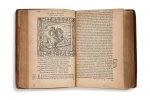 Plantini, 1581 In-12, [*1]-[*6], [2 ff.], [**-**3], 780 pp., [2 ff. bl.], en latin et grec. Plein veau brun, dos à nerfs orné, pièce de titre d'origine en maroquin citron, gardes de papier marbré (reliure d'époque). Nouvelle édition augmentée (l'édition originale avait paru en 1531), la troisième chez Plantin avec le commentaire de Claude Mignault. Ornée de d'un titre-frontispice gravé et de 211 figures gravées sur bois, dans le texte. André Alciat est le premier auteur de livre d'emblèmes, genre qui connut grâce à lui une fortune considérable. Notre édition propose 211 emblèmes (le dernier chiffré par erreur CCXIII). PROVENANCE Ex-libris manuscrit à l'encre brune sur feuillet ajouté, en allemand, qui mentionne Alfred Grenser de Leipzig (malheureusement à moitié déchiré et donc partiellement lisible); trace d'un ex-libris découpé dans la garde. (Reliure usagée: dos abîmé, pièce de titre en majorité absente sans affectation dans la lecture du titre, forts épidermures et frottements; mouillures, notamment une mouillure marginale n'affectant pas le titre-frontispice et fragilisant le papier en gouttière). Omnia Andreæ Alciati V.C. Emblemata Cum Commentaris: Quibus Emblematum Omnium Aperta Origine, Mens Auctoris Explicatur, & Obscura Omnia Dubiaque Illustrantur Per Claudium Minoem. Antuerpiae [Antwerp], Ex Officina Christophori Plantini, 1581 In-12, [*1]-[*6], [2 ff.], [**-**3], 780 pp., [2 ff. bl.], in Latin and Greek. Full brown calf, spine ribbed, original lemon morocco title coin, marbled endpapers (period binding). New enlarged edition (the original edition had appeared in 1531), the third at Plantin's with commentary by Claude Mignault. Decorated with an engraved title-frontispiece and 211 woodcut figures in the text. André Alciat was the first author of emblem books, a genre which, thanks to him, made a considerable fortune. Our edition offers 211 emblems (the last one mistakenly numbered CCXIII). PROVENANCE Ex-libris handwritten in brown ink on an added page, in German, which mentions Alfred Grenser of Leipzig (unfortunately half torn and thus partially legible); trace of an ex-libris cut out of the guard. (Used binding: spine damaged, title piece mostly missing without affecting the reading of the title, strong skin and rubbing; wetness, especially a marginal wetness that does not affect the title-frontispiece and weakens the paper in the gutter).