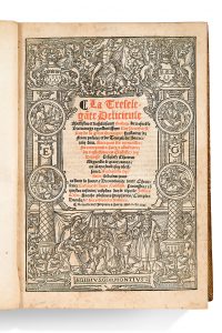 filet à froid, dos orné, pièce de titre rouge, roulette intérieure, tranches dorées sur marbrure (Reliure du XVIIIe siècle). Seconde et dernière édition gothique de ce roman de chevalerie. Imprimée en caractères gothiques, elle est ornée de 6 titres placés dans des encadrements gravés sur bois de style bâlois, celui du premier tome imprimé en noir et rouge, et d'une grande figure sur bois représentant l'adoubement d'un chevalier par un roi. PROVENANCE Ex-libris armoriés gravés du comte de Aylesford et de Richard de Loménie. (Manquent 4 feuillets dans le troisième volume (5e tome, ff. L2 à L5). Reliure très usagée, les premiers plats détachés).[PERCEFOREST] The Treselegante and Delicious Melliflue and very pleasing hystory of the tresnoble Victorious & Excellent Roy Perceforest, Roy of the Bretaigne grant. Paris, Gilles Gourmont, 1531. 6 tomes en 3 volumes in gothic folio, havana calf, cold fillet, decorated spine, red title piece, inside roulette, gilt edges on marbling (18th century binding). Second and last gothic edition of this chivalry novel. Printed in Gothic characters, it is decorated with 6 titles placed in woodcut frames in the Basel style, the one of the first volume printed in black and red, and a large figure on wood representing the knighthood of a knight by a king. PROVENANCE Engraved armorial bookplate of the Earl of Aylesford and Richard of Loménie (4 leaves are missing in the third volume (5th volume, ff. L2 to L5). Very used binding, the first plates detached).