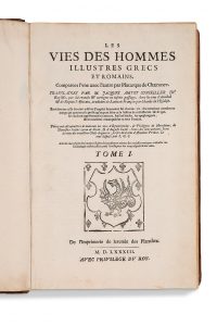PLUTARQUE (Ier siècle). [AMYOT Jacques (1513-1593)] Les Vies des hommes illustres grecs et romains, comparées l'une avec l'autre par Plutarque de Chæronee. Translatées de grec en françois par M. Jacques Amyot Conseiller du Roy &c, par lui...