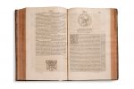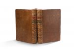 revenuës & corrigees en infinis passages. Avec les vies d'Annibal et de Scipion l'Africain, traduites de Latin en François par Charles de l'Escluse [...]. [Genève], de l'Imprimerie de Jérémie des Planches, 1583 2 forts volumes grand in-4, [12] ff. (titre, dédicace au roi, Aux Lecteurs, Sonnet, Indice chronologique, Catalogue des hommes illustres [...], Sonnet)- 776 pp.- [15] ff. (Indices sur les vies de Plutarque). Plein veau brun, dos à nerfs orné de fers dorés, pièce de titre dorée en maroquin rouge et tomaison dorée en maroquin vert, tranches rouges, gardes de papier marbré (reliure postérieure du XVIIe siècle). Rare première édition protestante de la traduction d'Amyot. Imprimée à Genève, elle contient les notes et commentaires de Simon Goulart, et est ornée d'une centaine de petits portraits placés en tête des biographies des Illustres, de bandeaux, lettrines et culs-de-lampe gravés. Bel exemplaire (état d'usage de la reliure avec frottements et épidermures; rousseurs et mouillures, quelques trous de vers dans le second volume). The Lives of Illustrious Greek and Roman Men, compared with each other by Plutarch of Chæronee. Translated from Greek into French by M. Jacques Amyot Conseiller du Roy &c, by him returned & corrected in infinite passages. With the lives of Annibal and Scipio the African, translated from Latin into French by Charles de l'Escluse [...]. Geneva], de l'Imprimerie de Jérémie des Planches, 1583 2 strong volumes grand in-4, [12] ff. (title, dedication to the king, To the Readers, Sonnet, Chronological Index, Catalogue of Illustrious Men [...], Sonnet)- 776 pp.- [15] ff. (Hints on the lives of Plutarch). Brown full calf, spine ribbed and gilt irons, gilt title piece in red morocco and gilt tomaison in green morocco, red edges, marbled endpapers (17th century post-binding). Rare first Protestant edition of Amyot's translation. Printed in Geneva, it contains the notes and comments of Simon Goulart, and is decorated with about a hundred small portraits placed at the head of the biographies of the Illustres, and with engraved headbands, lettering and culs-de-lampe. Beautiful copy (usual state of the binding with rubbing and skinning; freckles and wet spots, a few wormholes in the second volume).