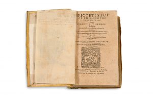 [STOÏCISME]. [EPITÈCTE]. Epicteti stoici philosophi Encheiridion, Item Cebetis Thebani Tabula [...] [suivi] de Epitecti Stoici philosophi Encheiridion, Hoc est pugio [...], [suivi de] Arriani commentariorum de Epitecti Disputationibus [...]....