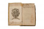 Cologne, Officina Birckmannica, 1595-1596. In-12, 4 ff., 119 pp., 320 pp., 538 pp., 19 ff. [Index], en latin et grec. Plein vélin d'époque rigide à rebords, dos lisse titré et numéroté à l'encre. Frontispice gravé. 3 tomes réunis en un seul volume. Annotations manuscrites à l'encre brune sur le feuillet liminaire. Ouvrage de philosophie stoïcienne résumant l'enseignement d'épictète, maître d'Arrien, à partir de textes tirés des Entretiens et se présentant sous forme de maximes morales. Rare édition. PROVENANCE Josephi Pelli (ex-libris à ses armes: d'azur à la fasce d'or et de trois roues du même posées 2 et 1). Bon état général. (Coin du rebord du plat inférieur de la reliure découpé; rousseurs sans altérations). Epicteti stoici philosophi Encheiridion, Item Cebetis Thebani Tabula [...] [followed] by Epitecti Stoici philosophi Encheiridion, Hoc est pugio [...], [followed] Arriani commentariorum de Epitecti Disputationibus [...]. Cologne, Officina Birckmannica, 1595-1596. In 12, 4 ff. 119 pp. 320 pp. 320 pp. 538 pp. 19 ff. Index], in Latin and Greek. Full contemporary rigid vellum with rims, smooth spine titled and numbered in ink. Engraved frontispiece. 3 volumes in one volume. Handwritten annotations in brown ink on the introductory page. A work of Stoic philosophy summarizing the teaching of Epictetus, master of Arrien, from texts taken from the Entretiens and presented in the form of moral maxims. Rare edition. PROVENANCE Josephi Pelli (ex-libris with his coat of arms: Azure with a fess Or and three wheels of the same placed 2 and 1). Good general condition. (Corner of the edge of the lower cover of the cut-out binding; freckles without alterations).