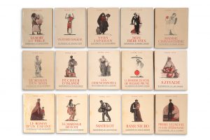 exemplaires de tête sur Japon, celui-ci contenant les illustrations hors texte en couleurs en trois états (couleur, bistre, et noir). L'ensemble comprend: Aziyadé illustré par Leroux, Les Désenchantées par Calbet, Madame Chrysanthème par Sylvain Sauvage, Le Mariage de Loti par Domergue, Matelot par Fouqueray, Mon frère Yves par Dufour, La Mort de Philae par Deluermoz, Pêcheur d'Islande par Méheut, Prime jeunesse par Marty, Ramuntcho par Brissaud, Le Roman d'un enfant par Marty, Le Roman d'un spahi par Fouqueray, La Troisième jeunesse de Madame Prune par Sauvage, Un pèlerin d'Angkor par Lalau et Vers Ispahan par Deluermoz. Set of 15 illustrated books, entitled "Illustrated Works". Paris, Calmann-Lévy, n. d. [1936-1938]. 15 volumes in-4. Paperbacks, under folders with protective flaps. One of the 20 leading copies on Japan, this one containing the illustrations in three states (color, bistre, and black). Set includes: Aziyadé illustrated by Leroux, Les Désenchantées by Calbet, Madame Chrysanthème by Sylvain Sauvage, Le Mariage de Loti by Domergue, Matelot by Fouqueray, Mon frère Yves by Dufour, La Mort de Philae by Deluermoz, Pêcheur d'Islande by Méheut, Prime jeunesse by Marty, Ramuntcho by Brissaud, Le Roman d'un enfant by Marty, Le Roman d'un spahi by Fouqueray, La Troisième jeunesse de Madame Prune by Sauvage, Un pèlerin d'Angkor by Lalau and Vers Ispahan by Deluermoz.