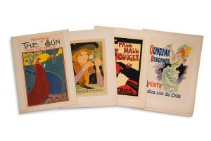 la planche - planche 10: affiche de Georges de Feure, Salon des Cent. 5me exposition du 1er au 31 Octobre, 1896, monogrammée dans la planche - planche 18: affiche d'Eugène Grasset, A la Place Clichy, 1896 - planche 24: affiche anglaise par Maurice Greiffenhagen pour la revue Illustrated Pall Mall Budget, 1896 - planche 29: affiche de Jules Chéret, Quinquina Dubonnet. Apéritif dans tous les Cafés, 1896 - planche 32: affiche de Charles H. Woodbury, The July Century, 1896, signée dans la planche - planche 38: affiche de Pierre Bonnard, La Revue blanche, 1896, signée dans la planche - planche 42: affiche d'Eugène Grasset, Librairie romantique, 1896, signée dans la planche - planche 50: affiche d'Eugène Grasset, Les Fêtes de Paris. Grande représentation à l'Opéra National le mardi 26 Janvier 1886 [...], 1896, signée dans la planche - planche 54: affiche de Pierre Puvis de Chavannes, «L'Enfance de Sainte- Geneviève», 1897 (au revers, trait de stylo à bille) - planche 67: affiche de Joseph Sattler, Pan, 1899 - planche 69: affiche de Jules Chéret, La Terre par E. Zola, 1897, signée dans la planche - planche 72: affiche italienne de Giovanni Mataloni, Società anonima per la Incandescenza a Gas [...], 1897, signée dans la planche - planche 73: affiche de Jules Chéret, La Loïe Fuller, 1897, signée dans la planche - planche 131: affiche d'Alexandre Charpentier, Grande Tuilerie d'Ivry [...] Grès Emile Muller [...], 1898, monogrammée dans la planche - planche 208: affiche hongroise d'Arpád Basch pour la Maison Kühnee en Hongrie, 1900 - planche 222: affiche d'H. Thomas, L'Eclair Journal Politique Indépendant, 1900, monogrammée dans la planche - planche 239: affiche de Fernand Gottlob, Salon des Cent [...] du 1er au 31 Décembre, 1900 Cachet embossé «Les Maîtres de l'Affiche, Imprimerie Chaix» en bas à droite sur chaque planche. 415 x 315 mm ou 398 x 578 mm (double-page). L'on joint à cet ensemble 5 affiches de l'Imprimerie Chaix sans cachets embossés: - planche 37: affiche de Jules Chéret, Les coulisses de l'Opéra au Musée Grévin, 1896. - Planche 61: affiche de Jules Chéret, Paris Courses, 1897 - planche 63: affiche de The Beggarstaffs, Lyceum Don Quixote, 1897 - planche 96: affiche anglaise d'Ellis Hyland, The Gay Parisienne, 1897 - planche 181: affiche de Jules Chéret, Le Pays des Fées - Jardin Enchanté, 1899 (Rousseurs, taches, petites déchirures, légers plis, salissures).[DISPLAYS] Set of 18 posters of the Poster Masters of the 1890s; colour lithographs on fine vellum: - plate 8: poster of Louis John Rhead, Advertising The Sun gives best results, 1896, monogrammed in the plate - plate 10: poster of Georges de Feure, Salon des Cent. 5th exhibition from October 1 to 31, 1896, monogrammed in the plate - plate 18: poster by Eugène Grasset, A la Place Clichy, 1896 - plate 24: English poster by Maurice Greiffenhagen for the magazine Illustrated Pall Mall Budget, 1896 - plate 29: poster by Jules Chéret, Quinquina Dubonnet. Apéritif dans tous les Cafés, 1896 - plate 32: poster by Charles H. Woodbury, The July Century, 1896, signed in the plate - plate 38: poster by Pierre Bonnard, La Revue blanche, 1896, signed in the plate - plate 42: poster by Eugène Grasset, Librairie romantique, 1896, signed in the plate - plate 50: poster by Eugène Grasset, Les Fêtes de Paris. Great performance at the Opéra National on Tuesday 26 January 1886 [...], 1896, signed in the plate - plate 54: poster by Pierre Puvis de Chavannes, "L'Enfance de Sainte- Geneviève", 1897 (on the reverse, ballpoint pen stroke) - plate 67: poster by Joseph Sattler, Pan, 1899 - plate 69: poster by Jules Chéret, La Terre par E. Zola, 1897, signed in the plate - plate 72: Italian poster by Giovanni Mataloni, Società anonima per la Incandescenza a Gas - plate 72: Italian poster by Giovanni Mataloni, Società anonima [...plate 73: poster by Jules Chéret, La Loïe Fuller, 1897, signed in the plate - plate 131: poster by Alexandre Charpentier, Grande Tuilerie d'Ivry [...] Grès Emile Muller [...], 1898, monogrammed in the plate - plate 208: Hungarian poster by Arpád Basch for the Maison Kühnee in Hungary, 1900 - plate 222: poster by H. H. Thomas, L 'Eclair Journal Politique Indépendant, 1900, monogrammed in the plate - plate 239: poster by Fernand Gottlob, Salon des Cent [...] from 1 to 31 December, 1900 Stamp embossed "Les Maîtres de l'Affiche, Imprimerie Chaix" in the lower right-hand corner of each plate. 415 x 315 mm or 398 x 578 mm (double page). This set is accompanied by 5 posters from Imprimerie Chaix without embossed stamps: - plate 37: poster by Jules Chéret, Les coulisses de l'Opéra au Musée Grévin, 1896. - Plate 61: poster of Jules Chéret, Paris Courses, 1897 - plate 63: poster of The Beggarstaffs, Lyceum Don Quixote, 1897 - plate 96: English poster of Ellis Hyland, The Gay Parisienne, 1897 - plate 181: poster of Jules Chéret, Le Pays des Fées - Jardin Enchanté, 1899 (Freckles, stains, small tears, slight folds, dirt).