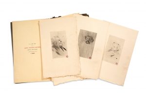 TOULOUSE-LAUTREC Henri de (1864-1901) Sept pointes sèches. Paris, Goupil et Cie. Manzi - Joyant, 1911 (Wittrock 241 à 247) Gravures: Environ 17 x 9 cm. Feuillets: 36 x 22 cm. Série complète des sept planches sur Japon, portant le timbre rouge de...