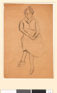 crayon sur papier, contrecollé sur une feuille de papier représentant Madame Toulouse assise. Le Docteur Toulouse et sa femme Jeanne furent très amicaux et proche d'Antonin Artaud dans ses jeunes années. EXPOSITIONS Paris, Bibliothèque Nationale de France, 2006-2007; Madrid, La Casa Encendida, 2009, p. 20 Portrait of Jeanne TOULOUSE. ORIGINAL DRAWING IN CRAYON Circa 1920. Pencil on paper, 20.4 x 13.6 cm, under frame. (Very slight lack of paper, slight folding and blistering). Original pencil drawing by Antonin Artaud on paper, pasted on a sheet of paper representing Madame Toulouse sitting. Doctor Toulouse and his wife Jeanne were very friendly and close to Antonin Artaud in his early years. EXHIBITIONS Paris, Bibliothèque Nationale de France, 2006-2007; Madrid, La Casa Encendida, 2009, p. 20