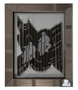 BERTINI Gianni (1922-2010) Gouache originale et découpage signée. Circa 1975 34 x 27 cm, sous encadrement. Gouache sur papier à lamelles découpées et contrecollées sur carton, signée au recto par Bertini représentant deux motards. Original...