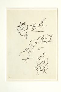 DRAWING, [1935] 28 x 21 cm, under frame. Extremely rare automatic ink drawing on erotic paper. Dry stamp from André Masson on the front. Certificate from the Masson committee.