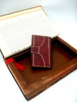 - Petit portefeuille en maroquin rouge fermant avec lanière aux armes de France, 19 x 12 cm.