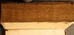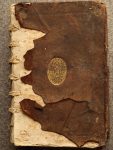 Restes de reliure veau ancien, médaillon central doré avec entrelacs, traces des 3 croissants bordelais dans les angles, tranches dorées antiquées.