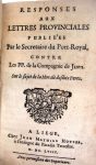 - [NOUET (Jacques), ANNAT (François), LINGENDES (Claude de) & BRISACIER (Jean de). Responses aux Lettres provinciales publiées par le secrétaire de Port-Royal contre les PP. de la Compagnie de Jésus sur le sujet de la morale des dits Pères. Liège, J. M. Hovius, 1658. In-12, 532 p., [5] p., vélin rigide à rabat, titre manuscrit au dos.