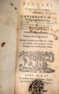 PINDARE. — Pindari Olympia, Pythia, Nemea, Isthmia, caeterorum octo lyricorum carmina : Alcaei, Sapphus, Stesichori, Ibyci, Anacreontis, Bacchylidis, Simonidis, Alcmanis, nonnulla etiam aliorum. — Genève, H. Estienne, 1560. — In-16, 576 p. —...