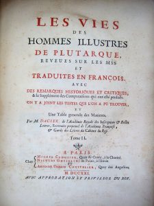 PLUTARQUE & DACIER (André, trad.). — Les vies des hommes illustres de Plutarque reveues (sic) sur les mss et traduites en françois avec des remarques historiques et critiques & le supplément des comparaisons qui ont été perdues. — Paris, M....