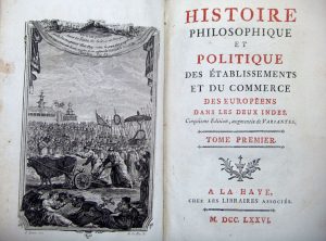 RAYNAL (Guillaume-Thomas). — Histoire philosophique et politique des établissements et du commerce des Européens dans les deux Indes. — La Haye, Libraires associés, 1776. — 7 vol. in-8, veau porphyre, dos à nerfs, pièces de titre et de...