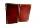Reliure de l’époque en maroquin rouge, dos lisse orné, pièce de titre de maroquin noir, triple filet doré en encadrement des plats, dentelle intérieure, toutes tranches dorées.