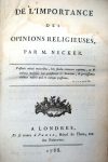 - NECKER (Jacques). De l'importance des opinions religieuses, Londres (Paris), Hôtel de Thou, 1788. In-8, 544 p., basane brune.