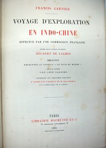 GARNIER (Francis). — Voyage d’exploration en Indo-Chine effectué par une commission française présidée par le capitaine de frégate Doudart de Lagrée. — Paris, Hachette, 1885. — Gd in-8, [2] ff., xv pp., 662 pp., 2 grandes cartes...