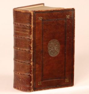 Apophthegmatum ex optimis utriusque linguæ scriptoribus. Lyon, Antoine de Harsy, 1574. In-8, veau fauve, décor à la Du Seuil, médaillon d'arabesques doré au centre, dos orné de filets à froid, tranches dorées (Reliure du XIXe siècle). Nouvelle édition lyonnaise de cet ouvrage du philologue allemand Conrad Lycosthenes, dans lequel il a rassemblé par ordre alphabétique thématique un grand nombre d'extraits d'auteurs grecs et latins. D'après Graesse, la première édition serait de Bâle, 1555.