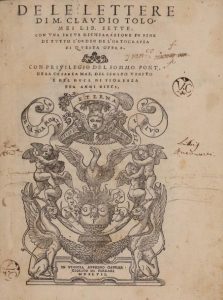 TOLOMEI (Claudio). De le lettere, lib. sette. Con una breve dichiarazione in fine di tutto l'ordin de l'ortografia di …