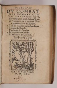 VIRET (Pierre). Dialogues du combat des hommes contre leur propre salut, & contre le devoir & le besoin qu'ils ont …