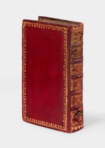 Vitruvius iterum et Frontinus à Jocundo revisi repurgatique quantum ex collatione licuit. Florence, Filippo Giunta, 1513. In-8, maroquin rouge, petite dentelle dorée, dos orné, roulette intérieure, tranches marbrées (Reliure du XVIIIe siècle). Première édition de poche et la seconde donnée par fra Giocondo, illustrée des figures de l'édition in-folio vénitienne de 1511, au format réduit, et de 4 nouveaux bois.