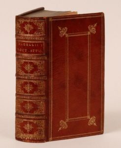 Noctes Atticæ. Amsterdam, Louis Elzevier, 1651. Petit in-12, maroquin rouge, décor à la Du Seuil, dos orné, dentelle intérieure, tranches dorées sur marbrure (Reliure de l'époque). Première édition elzévirienne dont les beaux exemplaires, dit Willems, sont rares et recherchés.