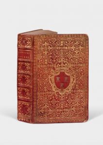 Riche reliure compartimentée aux armes des filles de France, qui étaient partagées par Mesdames Adélaïde, Victoire et Sophie. On distingue les volumes appartenant à chacune de ces trois filles de Louis XV par la teinte de leur maroquin, le rouge étant réservé à Madame Adélaïde (1732-1800).
