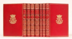 Ensemble 2 ouvrages. Œuvres. Paris, E. Picard puis A. Lemerre, 1867-1874. 7 volumes in-12, maroquin rouge, triple filet doré, chiffre couronné doré au centre, dos orné, dentelle intérieure, tête dorée (Reliure de l'époque). Édition conforme aux derniers textes revus par l'auteur avec les variantes de toutes les éditions originales, comportant une notice, des notes et un glossaire par Pierre Jannet. Bel exemplaire bien relié au chiffre du marquis du Lau d'Allemans, avec son ex-libris. Quelques rousseurs claires.