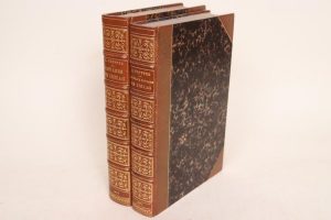 Voyages en zigzag ou excursions d'un pensionnat en vacances dans les cantons suisses et sur le revers italien des Alpes. Paris, J.-J. Dubochet, 1844. – Nouveaux voyages en zigzag à la Grande Chartreuse, autour du Mont Blanc, dans les vallées d'Herenz, de Zermatt, au Grimsel, à Gênes et à la Corniche. Paris, Victor Lecou, 1854. 2 volumes grand in-8, demi-maroquin bronze avec coins, filet doré, dos orné, non rogné, couverture et dos (Reliure de la fin du XIXe siècle). Premier tirage de l'illustration, comprenant 2 frontispices, 100 compositions hors texte de Töpffer et Calame, et de nombreuses vignettes sur bois.