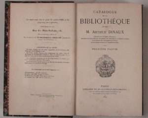 Catalogue de la bibliothèque de feu M. Arthur Dinaux. Paris, Bachelin-Deflorenne, 1864-1865. 4 parties en un volume in-8, demi-chagrin brun (Reliure de l'époque).