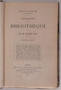 PIOT (Eugène)]. Catalogue de la bibliothèque de feu M. Eugène Piot. Paris, Paul, Huard et Guillemin, 1891. 2 …
